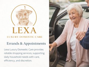 Lexa Luxury Domestic Care provides support with errands and appointments, helping clients manage daily tasks reliably and on time.