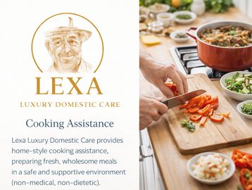 Home-style meal preparation by Lexa Luxury Domestic Care, offering practical cooking assistance as part of everyday home support (non-medical, non-dietetic).